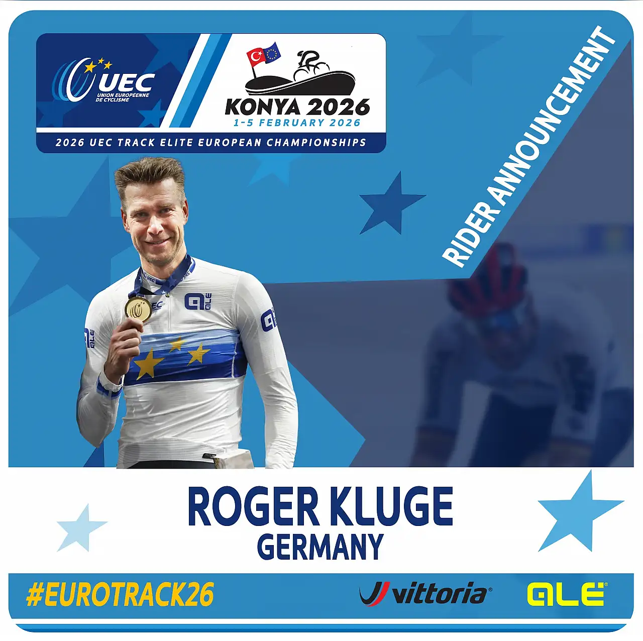 Almanya’nın tecrübeli yıldızı Roger Kluge, olimpiyat gümüş madalyası, dünya ve Avrupa şampiyonlukları ile pist bisikletinin en önemli isimleri arasında yer alıyor. Aynı zamanda Grand Tour etap galibiyeti bulunan Kluge, 2026 UEC Elit Avrupa Pist Bisikleti Şampiyonası’nda Konya’da piste çıkacak yıldız sporcular arasında bulunuyor.