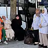 Umre sevinci yaşayacak engelliler, yapılan duanın ardından aileleriyle vedalaşarak otobüslerle uğurlandı.