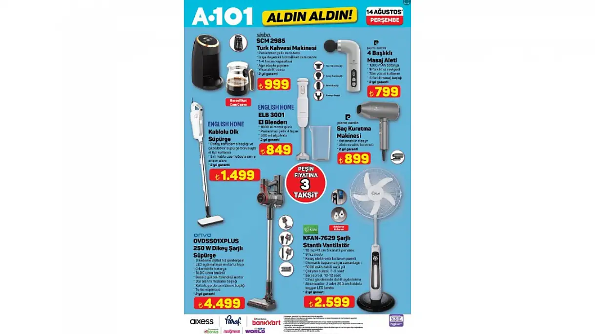 Haberler Güncel A101 aktüel kataloğu yayında, indirimli ürünler raflarda! Hangi ürünler indirimde? işte detaylar... A101 aktüel kataloğu yayında, indirimli ürünler raflarda! Hangi ürünler indirimde? işte detaylar... 14 Ağustos 2025 A101 indirimli ürünler kataloğu yayımlandı. İşte detaylar... PAYLAŞ 09.08.2025 13:42 Güncelleme: 09.08.2025 13:42 Şahin YaldızlıMuhabir TAKİP ET 4 14 PAYLAŞ Görsel - 4 : A101 aktüel kataloğu yayında, indirimli ürünler raflarda! Hangi ürünler indirimde? işte detaylar... Hakimiyet Gazetesi - Hakimiyet Haber - Bizi Sosyal Medyada Takip Edin! Facebook X.com Instagram