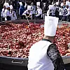 Afyonkarahisar'da gerçekleştirilen 7. Uluslararası Gastro Afyon Festivali'nde 100 şef 25 metrekarelik dev krom tavada bin 930 kiloluk dev sucuklu yumurta yaparak dünya rekoru kırdı.
