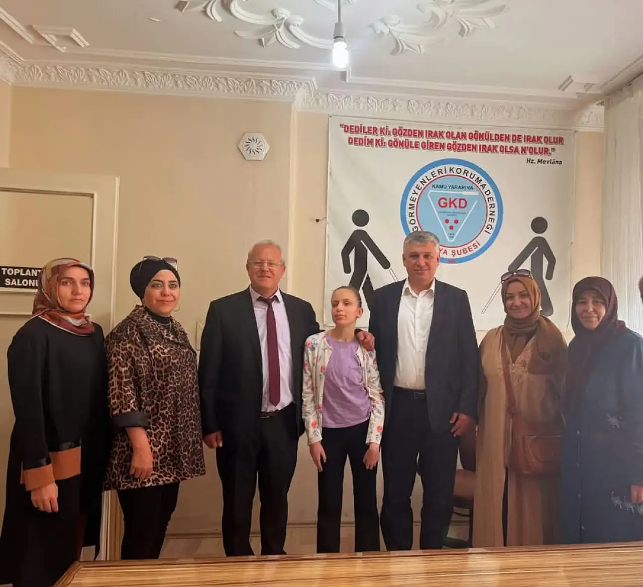 Ak parti Selçuklu ilçe başkanı Arif Bağcı ve yönetim kurulu bazı üyeleri ile Ak parti Selçuklu ilçe kadın kolları başkanı Özlem Demirci ve ekibi Görmeyenleri Koruma Derneği Konya Şubesini ziyaret etti