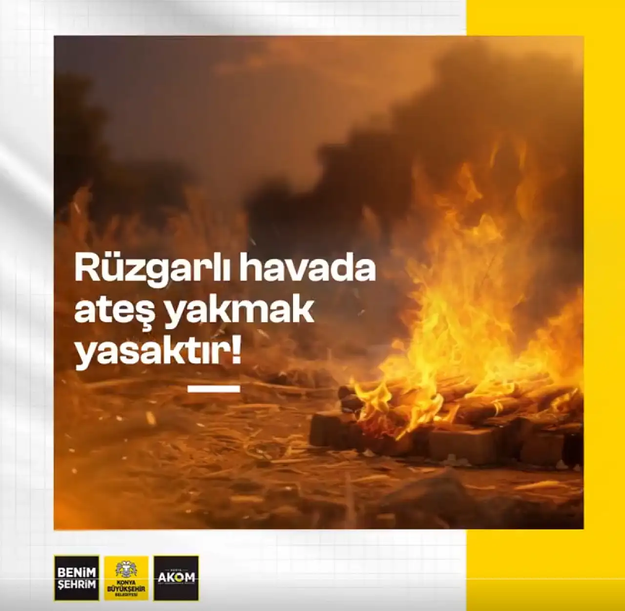 Konya Afet Koordinasyon Merkezi (AKOM), rüzgarlı havada ateş yakmanın oluşturabileceği tehlikelere karşı vatandaşlara uyarıda bulundu.