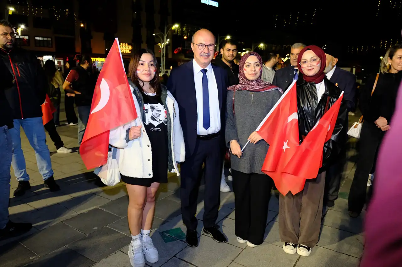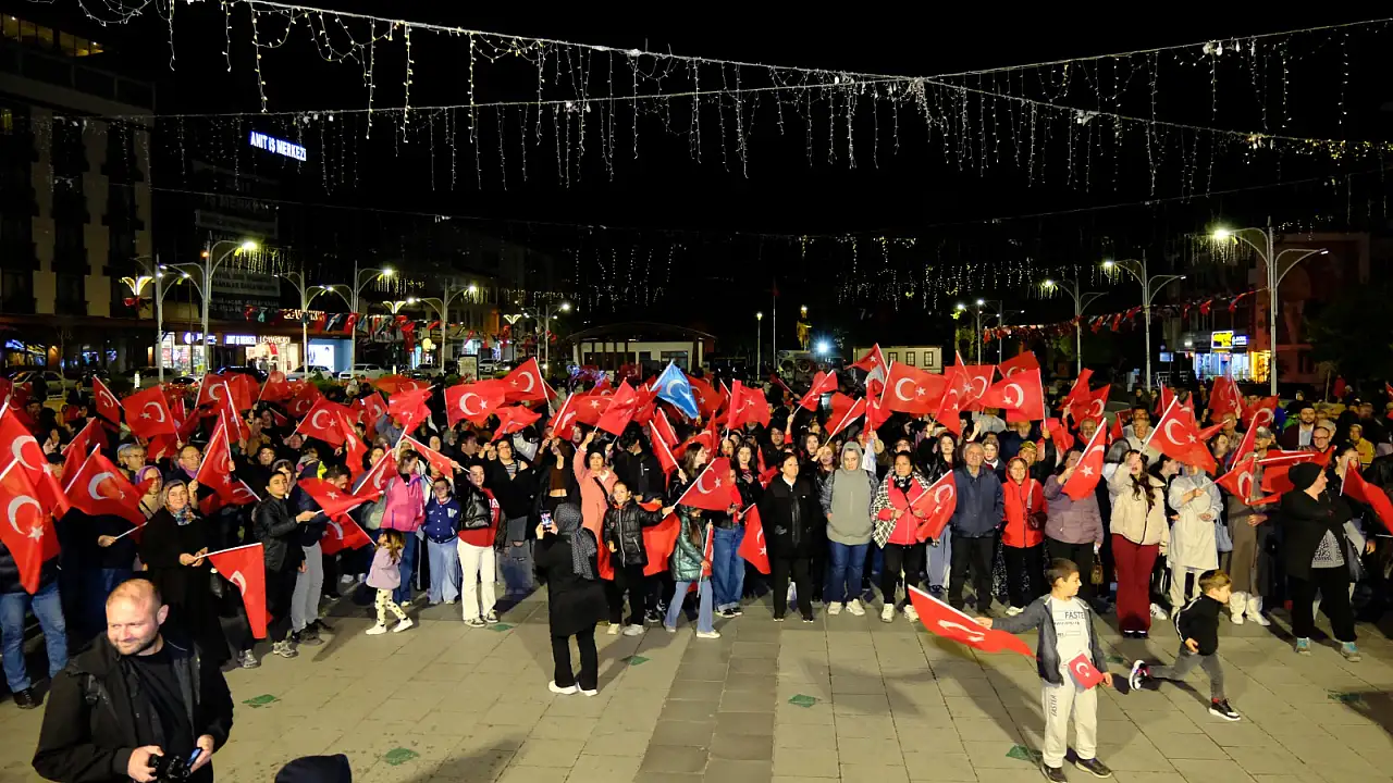 Akşam saatlerinde Cumhuriyet Meydanı, Cumhuriyet ve Türkçülük Mitingi ile bir kez daha coşkuya sahne oldu. Meydanda vatandaşlara hitap eden Başkan Köksal, Türk milletinin tarihsel direncine ve medeniyetine vurgu yaptı.