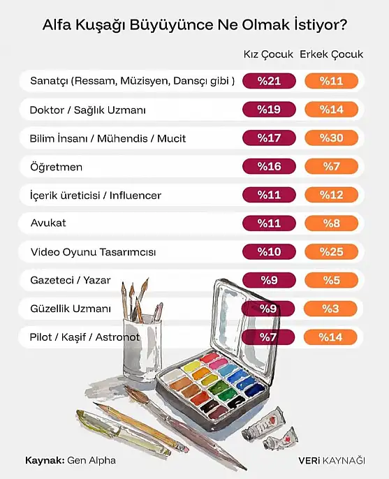 Alfa kuşağının hayalleri: Kızlar sanatçı, erkekler mühendis olmak istiyor!