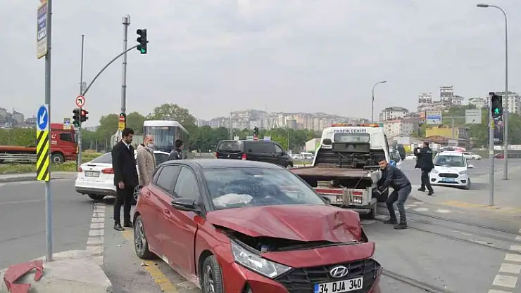 Eyüpsultan'da Cibali-Alibeyköy Cep Otogarı tramvay hattı seferini yapan tramvaya, kırmızı ışıkta duramayan otomobil çarptı.