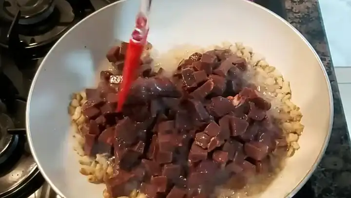 Ciğerler kızardıktan sonra biber salçasını ve domates salçasını ekleyin. Salçaları ciğerlerle iyice karıştırın.