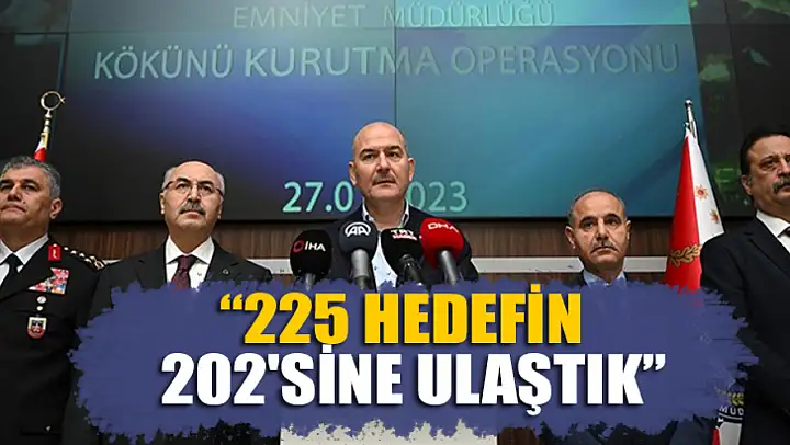 İçişleri Bakanı Süleyman Soylu Zehir tacirlerine karşı başlatılan Kökünü Kurutma Operasyonlarında 225 hedefin 202'sine ulaşıldığını duyurdu.