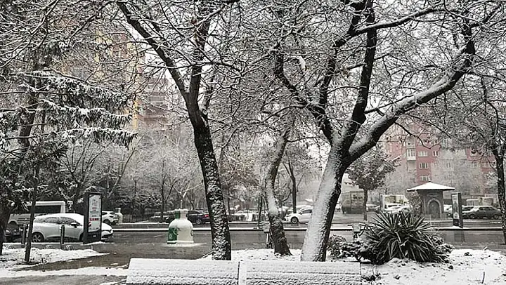 Konya'da öğle saatlerinden sonra başlayan kar yağışı devam ediyor. Akşam saatlerinde kent merkezi ve ilçeler beyaz örtüyle kaplandı. Kar yağışı ile beraber beyaza bürünen kent merkezindeki parklarda kartpostallık görüntüler oluştu.
