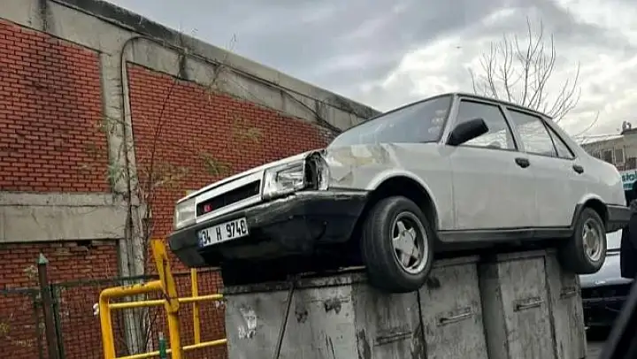 Başakşehir İkitelli OSB Mahallesi'nde bulunan bir sanayi sitesine önceki sabah gelen vatandaşlar, çöp konteynerlerinin üstüne bırakılmış arabayı görünce şoke oldu. Ne olduğunu anlayamayan vatandaşlar şaşkınlıklarını gizleyemezken, kim tarafından ve neden bırakıldığını anlamaya çalıştı.