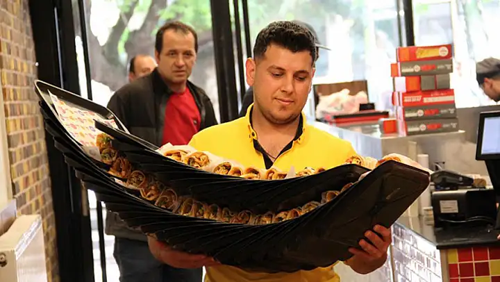 “İlk başladığım zamanlar 5 tepsiyle başladım, şimdi 35 tane tepsi kaldırıyorum. Gün geçtikçe daha çok üstüne kattım 5, 7, 10, 15, 20, 30 oldu derken şu an 45'e kadar çıkabiliyorum. Biz bu işi severek yapıyoruz ve müşterilerimize daha hızlı bir şekilde götürmenin çabasıyla çalışıyoruz. Müşterilerimiz bizi gördüğü zaman öyle bir şaşkınlık oluyor ki üstümüzde bir ton ağırlık varmış gibi öyle bir bakıyorlar. Müşterimizin hayranlığını gözlerimle görebiliyorum. Bu bizi daha çok mutlu ediyor. Müşterimize daha iyi bir hizmet verebilmek için bu taktiği deniyoruz. Şu anki hedefim 60'a kadar taşımak, nasip olursa bir kaç güne kadar da onu da tamamlarım. Bizi gördüklerinde çocukların gözleri fıldır fıldır oluyor, ‘Nasıl taşıyabiliyor' diyorlar. Hemen anne babalarına ‘Bak nasıl kaldırıyor, düşürmüyor' diyorlar. Daha iyisini yapabilen varsa buyursun hodri meydan beklerim.”