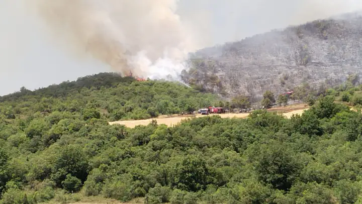 İhbar üzerine bölgeye sevk edilen Orman Bölge Müdürlüğü ekipleri, 3 helikopter, 9 arazöz, 5 su tankeri ve 89 personelle yangını söndürmek için çalışıyor.