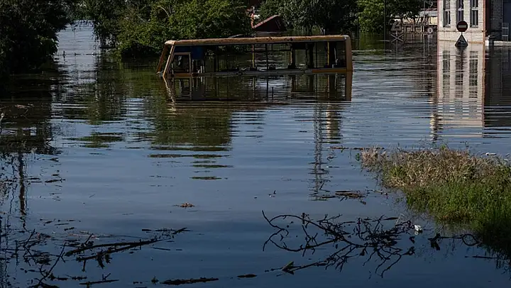 Ukrayna'da Kahovka Barajı'nın vurulmasının ardından, barajın altındaki yerleşim yerlerinde su seviyesi 5,5 metre yükseldi.