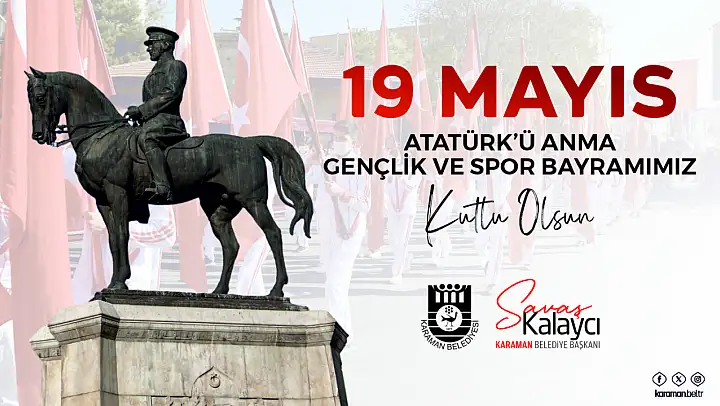 Karaman Belediye Başkanı Savaş Kalaycı, 19 Mayıs Atatürk'ü Anma, Gençlik ve Spor Bayramı dolayısıyla yayımladığı mesajında, 'Türkiye Cumhuriyeti'nin temellerinin atıldığı ve milli birlik ruhunun perçinlendiği bu tarihi günün gençlere armağan edilmesi de, sevgili gençlerimizin ülkemizin geleceğinde üstleneceği sorumlulukları ve taşıdığı umutları simgelemektedir.' dedi.