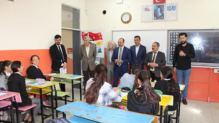 Kaymakam Özgür Pelvan'ın okul ziyaretine İlçe Milli Eğitim Müdürü Mahmut İşcan, Turçev- Der Başkanı Erol Yayla ve Hursunlu Mahalle Muhtarı Hasan Şahin eşlik etti.