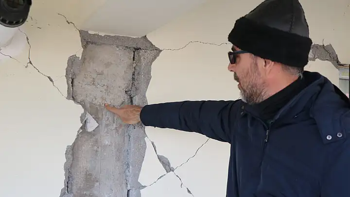 Apartmanın 2 yıllık olduğunu ve sokakta sadece kendi apartmanlarının hasar gördüğünü söyleyen bina sakini Ebubekir Gök, “Burası 2 senelik bir bina. Depremde ev üzerimize uçacak gibi hissettik biz. Yıkılacak zannettik ve kendimizi dışarı attık. Buraya hasar tespiti için geldiler ve binamıza az hasarlı raporu verdiler. Bizim burada şikayetimiz, kolonlarımızın üzerine hep taş doldurmuşlar. Yani birinci katın kolonlarının üzerine ek yapılış ve taş doldurulmuş. Zaten yakından bakınca da görünüyor. Biz buna gerekenin yapılmasını istiyoruz. Çünkü bu binaya da az hasarlı vermişler. Bu nasıl oluyor da az hasarlı veriliyor? Kolonlar hep çatlak, üzerinde de taş dolu. Bu binada bundan sonra oturmak için artık can güvenliğimizin olacağını zannetmiyorum ben. Biz bu binayı yapan ve yapımına izin veren herkese gerekli adli işlemlerin yapılmasını istiyoruz. Biz bunu yapanların cezasını almalarını istiyoruz. Bu mahallede bundan başka hasarlı bir bina yok. Sağa sola bakıldığı zaman da görülüyor. Tabi burada müteahhitlerin payı var ve binamızın yöneticisi kaç kere aramasına rağmen telefonlarımıza da bakmıyor. İlgilenmiyorlar da yani” dedi.
