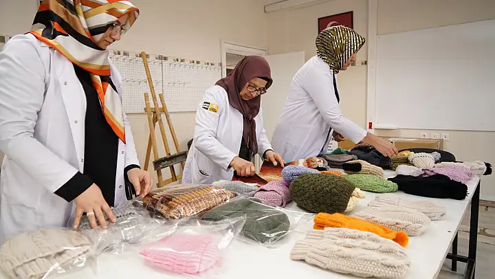 Depremin ilk gününden beri eğitmen, kursiyer ve gönüllüler el birliği yaparak gece gündüz kurs merkezlerinde ve atölyelerde kışlık kıyafetler, nevresim takımları, battaniyeler, uyku tulumları üreterek depremzedelere gönderiyor.