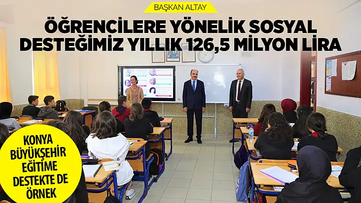 Konya'nın sosyal yardımlar konusunda önemli bir başarıya imza attığını ifade eden Başkan Altay şöyle devam etti: “Konya Büyükşehir Belediyesi olarak sadece eğitim alanında öğrencilerimize verdimiz sosyal destek tutarı yıllık 126,5 milyon lira. Bunlara ilaveten Sosyal Kart vasıtasıyla 31 ilçemizdeki ihtiyaç sahibi ailelerimize de desteğimiz aralıksız devam ediyor. Konya'nın her kesimine eşit ve adaletli bir şekilde hizmet etme misyonuyla hareket ediyoruz. Şehrimizin hoşgörü ve kardeşlik ruhunu yansıtan sosyal belediyecilik anlayışıyla bugüne kadar olduğu gibi bundan sonra da tüm gücümüzle öğrencilerimizin ve ihtiyaç sahibi vatandaşlarımızın yanında olmaya devam edeceğiz inşallah.”