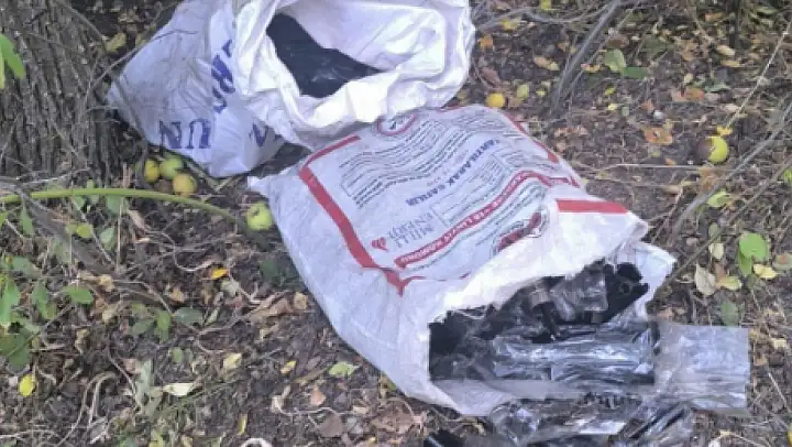 Konya'da ağaç altına bırakılan 2 çuvalda çok sayıda tabanca ve tüfek parçası bulundu.