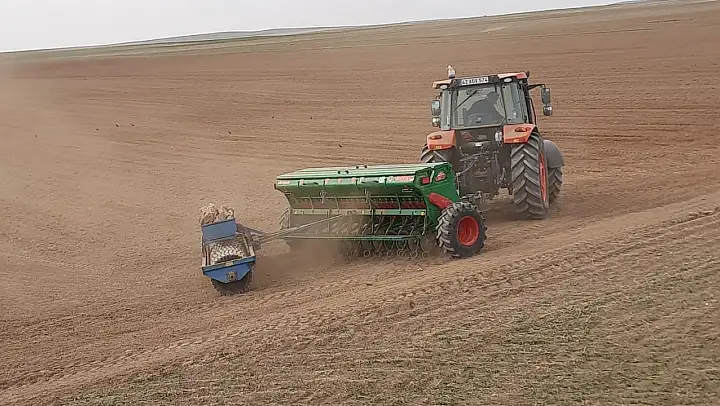 Konya'nın Kulu ilçesinde Mercimek, kimyon, aspir, fasulye, lavanta ve elma fideleri toprakla buluştu.