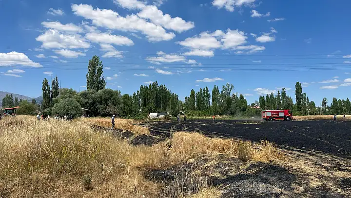 Konya'da buğday ekili tarlada yangın paniği yaşandı.