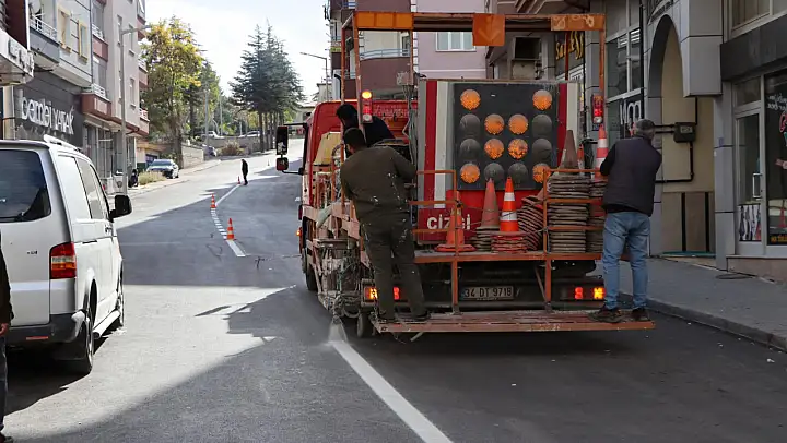 Beyşehir Belediyesi yol yapım, onarım, düzenleme kapsamında sıcak asfalt tamamlanan caddelerde yol çizgileme çalışmalarına başladı.