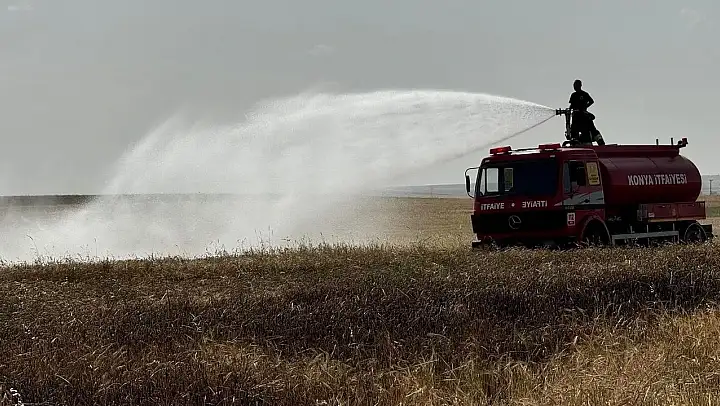 Konya'da arpa ekili alanda çıkan yangın söndürüldü.