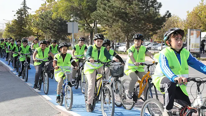 Konya Büyükşehir Belediyesi tarafından şehir genelinde çocukların bisikletle okula güvenli şekilde gitmelerini sağlamak amacıyla sürdürülen 'Güvenli Okul Yolları Projesi' kapsamında Seyit Ulugülyağcı İmam Hatip Ortaokulu, Kaşgarlı Mahmut Ortaokulu ve Ahmet Haşhaş Ortaokulu'nda sürüş etkinliği gerçekleştirildi.