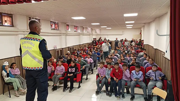 İlçe Jandarma Komutanlığı ekipleri, Kıreli Mahallesi'ndeki Şehit Kadir Kayhan İlkokulu ve Ortaokulu'ndaki öğrencilere trafik eğitimi sunumu yaptı.