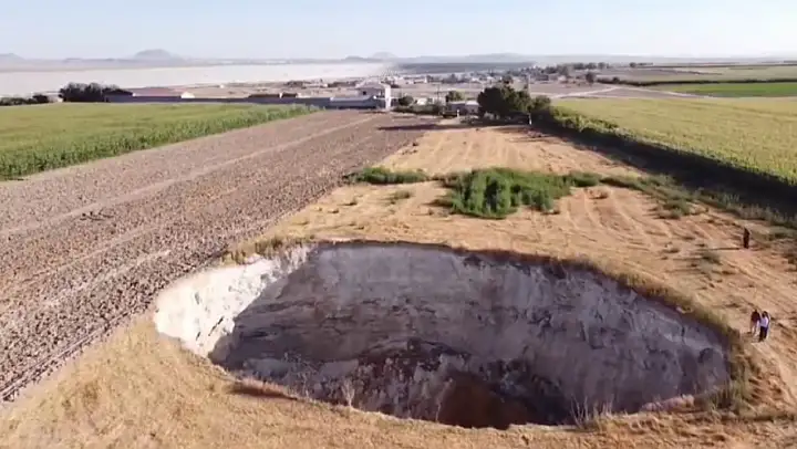 Büyük olan obruk, Karapınar'a yaklaşık 10 kilometre mesafede bulunan Reşadiye Mahallesi Cafer Şık Yaylası'nda oluştu. Obruğun yaklaşık 100 metre ilerisinde ise tarlanın sahibi olan çiftçi Fatih Şık'ın evi bulunuyor. Fatih Şık, obruğun oluştuğu alanda geçtiğimiz yıl çatlaklar fark ettiğini, o alanda ekim yapmadığını söyledi. Obruğun yaklaşık 50 metre çapında ve 35-40 metre derinliğinde olduğu kaydedildi.