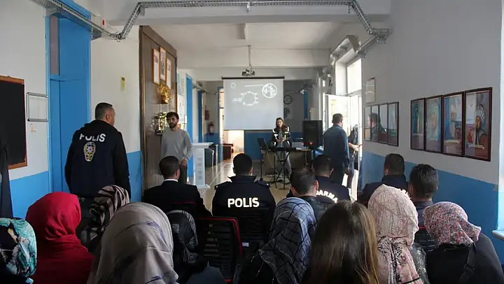 Seydişehir İlçe Emniyet Müdürlüğü Narkotik Büro Amirliği görevlilerince, Yalıhüyük Anadolu Lisesi salonunda sunum yaptı.