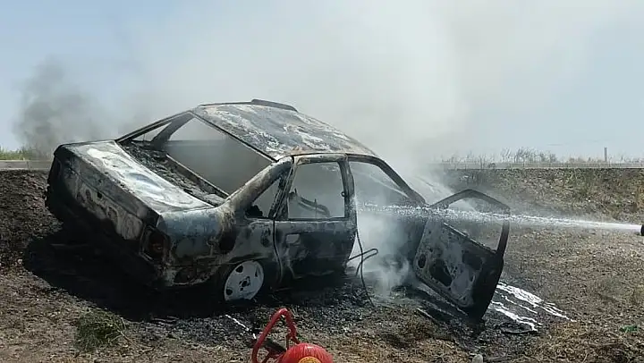 Konya'nın Karapınar ilçesinde seyir halindeyken aniden alev alan bir otomobilde bulunan sürücü, eşi ve çocuğu faciadan son anda kurtuldu. Yangın sonucu araç tamamen kullanılamaz hale geldi.