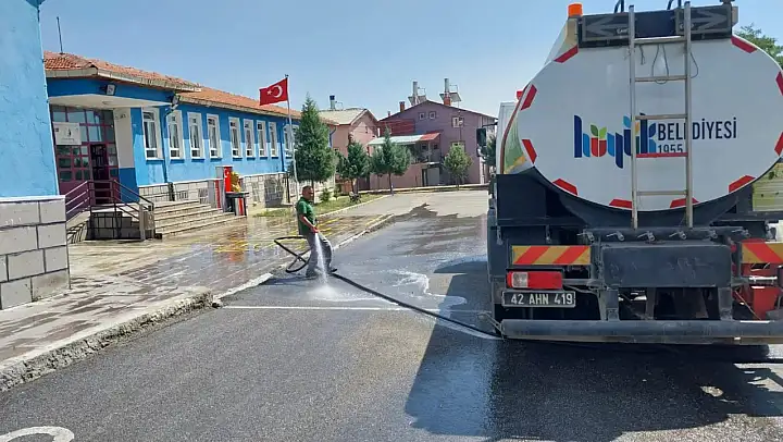 Hüyük Belediyesi Temizlik İşleri Müdürlüğüne bağlı ekipler, ilçedeki okullarda temizlik çalışması yapıyor.