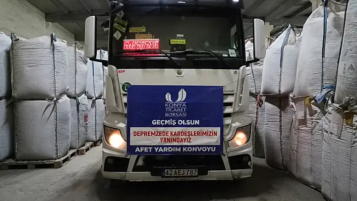 Deprem sonrası hemen harekete geçen Konya Ticaret Borsası (KTB), ihtiyaçlar için bölgeye un, bakliyat ve gıda ürünlerinden oluşan yardım TIR'larını Hatay'a ulaştırmaya başladı.