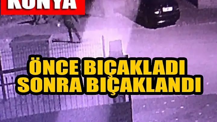 Konya'da sokak üzerinde aralarında cüzdan çalınma meselesi olan iki kişi arasında bıçaklı kavga çıktı. İki kişinin birbirini bıçakladığı olay anı ise güvenlik kamerasına saniye saniye yansıdı.