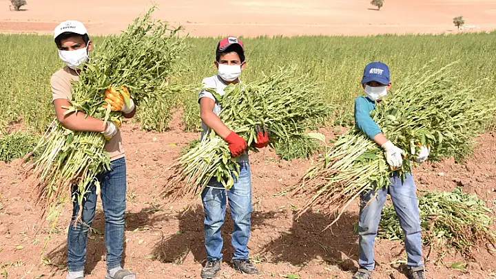 Konya Büyükşehir Belediyesinin çiftçiye destekte bulunduğu yüzde 100 yerli ve milli susam tohumlarında ilk ürün hasadı yapıldı.