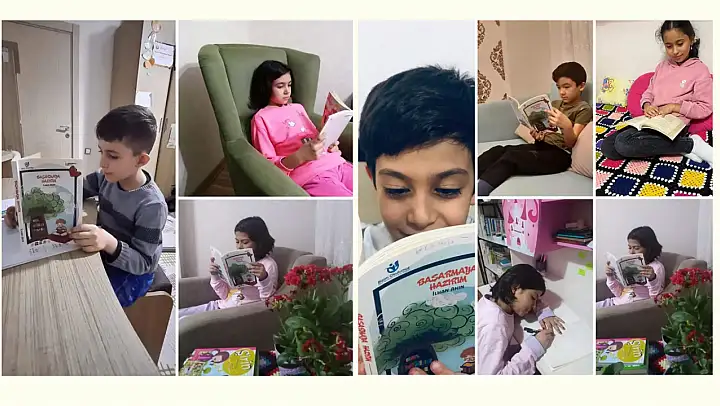 Öğrenciler kütüphanelerde ilgilerini çeken kitapları inceleyerek okumak istedikleri kitapları aileleriyle ve okulda öğretmenleri ile paylaşmak üzere not ediyorlar.