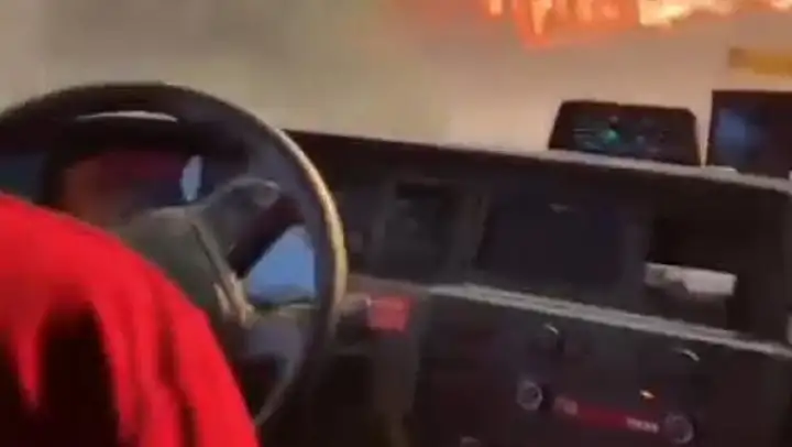 İzmir'de 4 gün önce Aliağa ilçesinde çıkan ve Foça'ya doğru genişleyen orman yangınında, Orman İşletme Müdürlüğü'ne ait bir arazözün alevlerin arasında kaldığı panik anları ortaya çıktı.