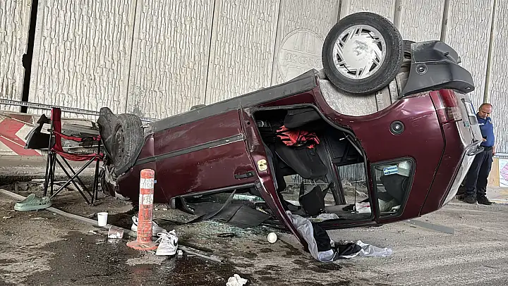 Virajı alamayarak bariyerlere çarpıp devrilen araçtaki 5 kişi yaralandı.