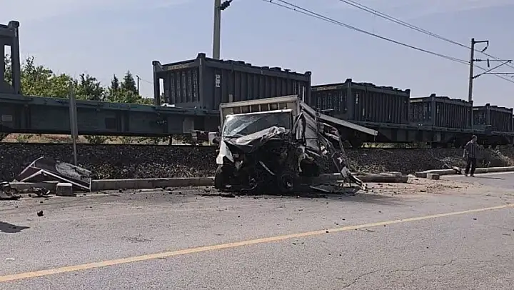 Yük treni bir pikaba çarptı, kazada yaralanan olmadı.