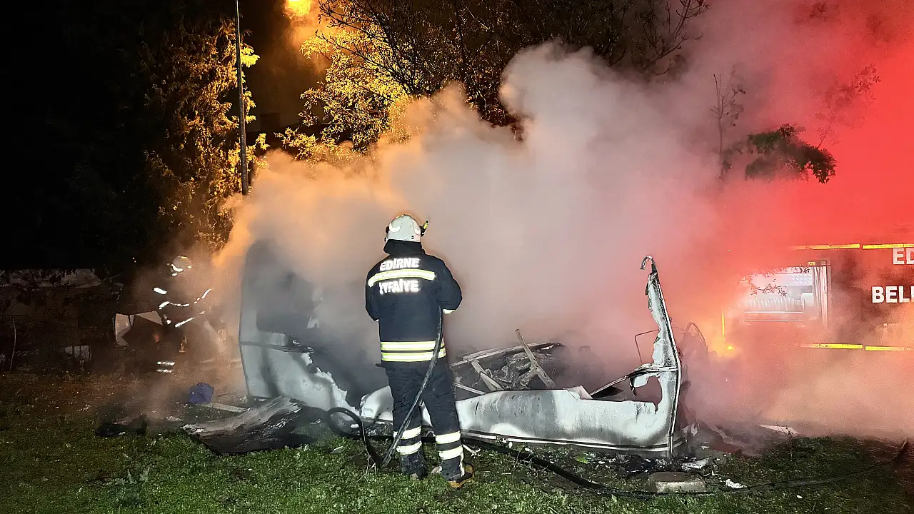Edirne’nin Yeniimaret Mahallesi’nde bir karavanda yaşayan Fatih Dövüncü gece geç saatlerde annesinin mezarına gitti. Dövüncü mezarlıktayken yaşadığı karavanda yangın çıktı. Alev topuna dönen karavan, saniyeler içinde küle döndü.