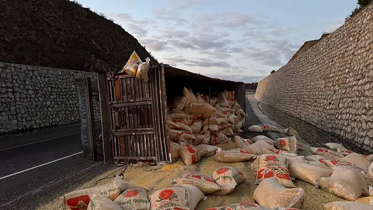 Antalya–Konya yolunda kaza: Yem yüklü TIR devrildi