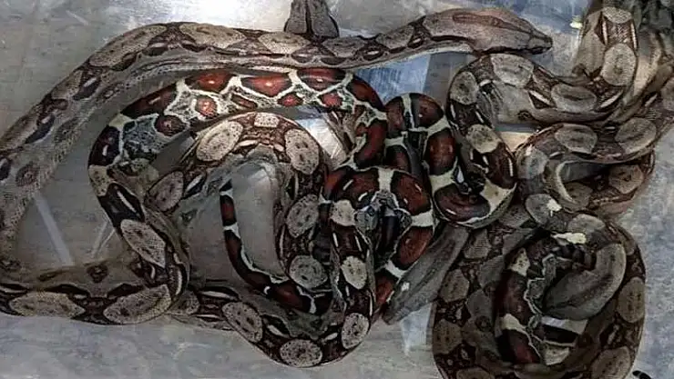 Antalya'da yolcu otobüsüyle şehir dışına çıkarılmaya çalışılan 4 piton yavrusu konuldukları kutuda havasızlıktan öldü.