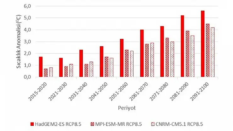 “Sıcaklığın önümüzdeki 2100’e kadar iyimser tabloda 3.3 derece, kötümser tabloda ise 5.6 derece artacağını görüyoruz. Bu da iklim krizi olacağı anlamına geliyor. Yapılan çalışmalarda 2090’lı yıllara kadar iklim değişikliğine bağlı kalarak, yağışların günümüzdekine kıyasla yüzde 27 azabileceğini net olarak söyleyebiliriz. Bugün önümüzdeki 100 yıl içerisinde sıcaklığın artığını, yağış rejiminin azaldığını, hızlı ve bilinçsizce su kaynaklarını tükettiğimizi söyleyebiliriz. Bu rakamlar kriz anlamına geliyor. Küresel anlamda yapılan çalışmalarda bırakın 3 dereceyi, 5 dereceyi 1-2 derecenin bile bölgede insanlar ve canlılar üzerinde krize dönüştüğünü, büyük zaralar ve tehditler olduğunu, canlıların, doğanın ve ekosistemin etkileneceğini söyleyebiliriz. Bu rakamlar çok büyük rakamlardır”