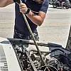 Ankara'da yaşayan Fatih Yavuz, park halindeki bir aracın motor kısmına giren yılanı elindeki sopayla çıkardı.