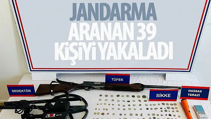 Aranan 39 kişiden 8’i tutuklandı. Trafik uygulamasında ise 10 sürücüye ehliyetsiz ve yetersiz ehliyetle araç kullanmaktan işlem yapıldı. 20 araç trafikten men edilirken 3 araç sürücüsüne alkollü araç kullanmaktan işlem yapıldı. 4 sürücünün ise ehliyetine el konuldu. Denetimler esnasında 8 adet ruhsatsız av tüfeği, 200 adet çeşitli ebatlarda fişek, 1 adet tüfek namlusu, 1 adet boş tabanca şarjörü, 1 adet kelebek bıçak, 104 adet tarihi eser olduğu değerlendirilen sikke, 10 adet tarihi obje, bir miktar uyuşturucu madde ile define arama malzemeleri ele geçirildi.