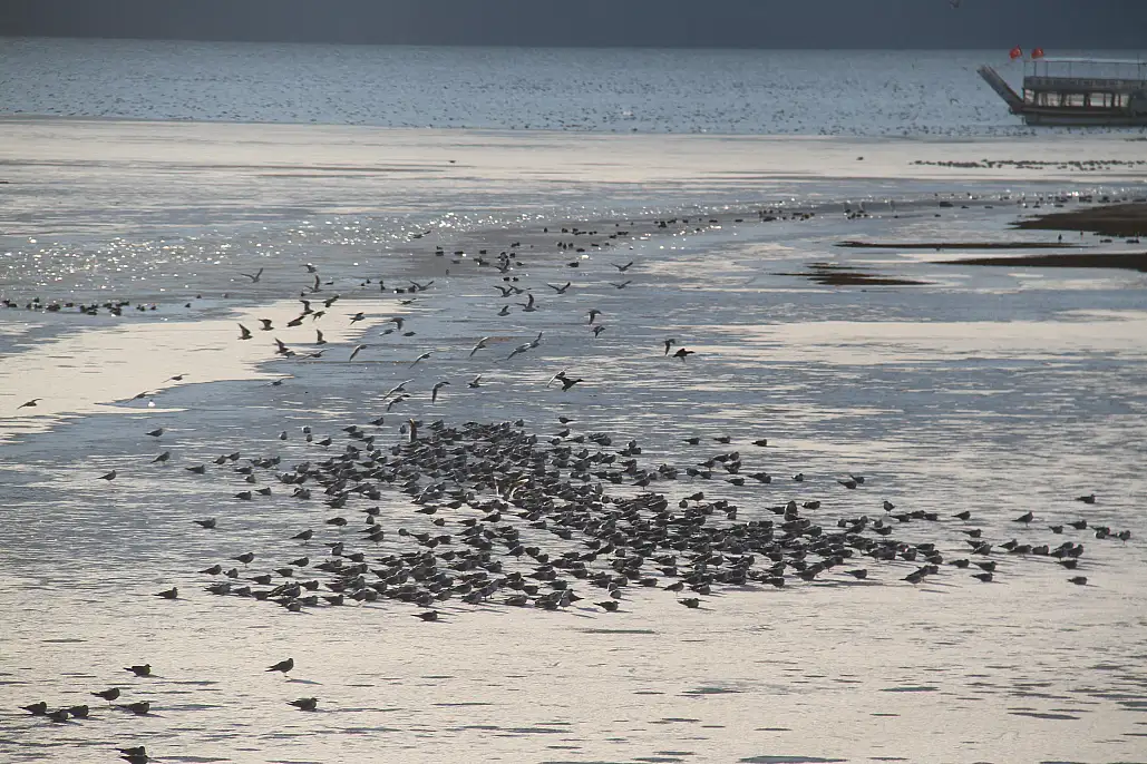 Beyşehir Gölü'nün kıyıları kalın buz tabakasıyla kaplandı. Tekneler zarar görme riskiyle karşı karşıya kalırken, balıkçılar avlanmaya ara verdi. Donan göl, su kuşlarını şehir kıyılarına sürükledi.