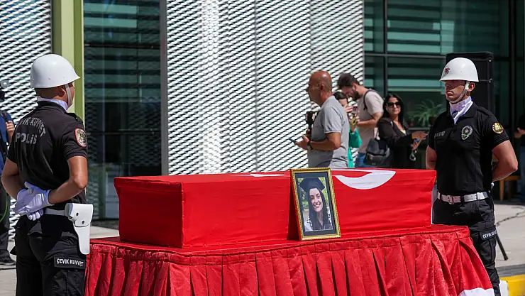 İzmir Adnan Menderes Havalimanı' nda düzenlenen törende, Eygi' nin Türk bayrağına sarılı naaşı polis mangası eşliğinde tören alanına taşındı.