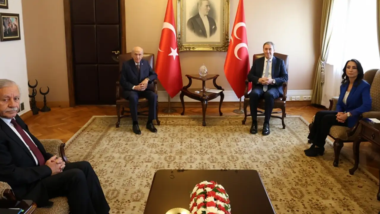 Bahçeli'nin Meclis'teki makamında gerçekleşen görüşmede, TBMM Başkanvekili Celal Adan ve MHP Genel Başkan Yardımcısı Feti Yıldız da yer aldı. Görüşmede DEM Parti heyetinde, Bakırhan ve Hatimoğulları'nın yanı sıra DEM Parti Grup Başkanvekilleri Sezai Temelli ve Gülüstan Kılıç Koçyiğit de bulundu.
