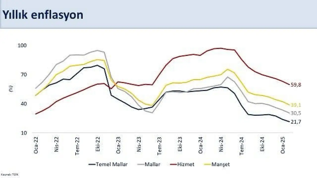 Bakan Şimşek, sosyal medya hesabından yaptığı paylaşımda, "Dokuz aydır gerileyen yıllık enflasyon şubatta yüzde 39,1 gerçekleşti. Temel mallarda yıllık enflasyon geçen yılın aynı ayına göre 32 puan düşüşle yüzde 21,7, hizmet enflasyonu ise 35 puan düşüşle yüzde 59,8 oldu. Dezenflasyon sürecini destekleyen maliye ve gelirler politikaları ile beklentilerdeki iyileşme sayesinde enflasyondaki istikrarlı düşüşün devam etmesini bekliyoruz. Vatandaşlarımızın alım gücünü ve gelir dağılımını kalıcı olarak iyileştirecek olan fiyat istikrarına ulaşmak için politikalarımızı kararlılıkla uygulayacağız" ifadelerine yer verdi.