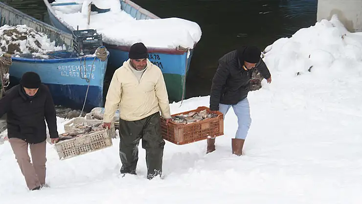 Olumsuz hava şartları, Türkiye'nin en büyük tatlı su gölü olan Beyşehir Gölü'nde balıkçılığı zorlaştırdı. Avlanmaya ara veren balıkçılar limanlara gelerek kar örtüsüyle kaplanan balıkçı teknelerinde temizlik yaptı.